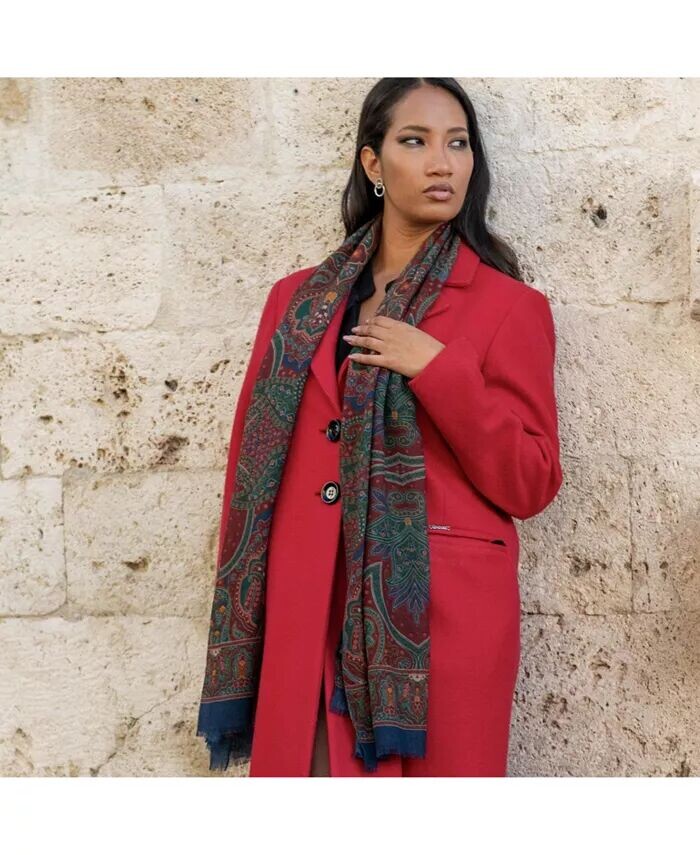 Согрейтесь этой зимой в итальянском стиле с этим мягким и легким шерстяным шарфом, который добавит элегантности вашему образу. Этот шарф, вдохновленный фресками потолков галереи Уффици во Флоренции, украшен замысловатым узором пейсли, который придаст вашему образу итальянский стиль. 100% Сделано в Комо, Италия.