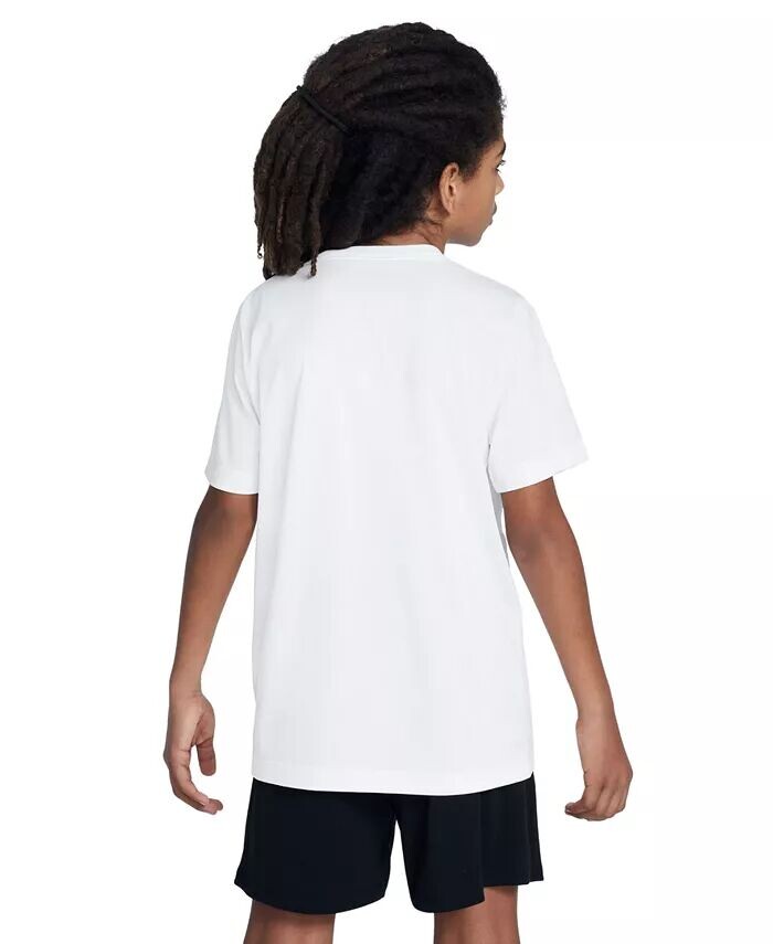 В этой футболке Nike классического кроя, выполненной из мягкого и легкого трикотажного полотна, используется технология впитывания влаги Dri-FIT, которая помогает детям оставаться сухими и чувствовать себя комфортно, позволяя им сосредоточиться на самом важном: веселье!
