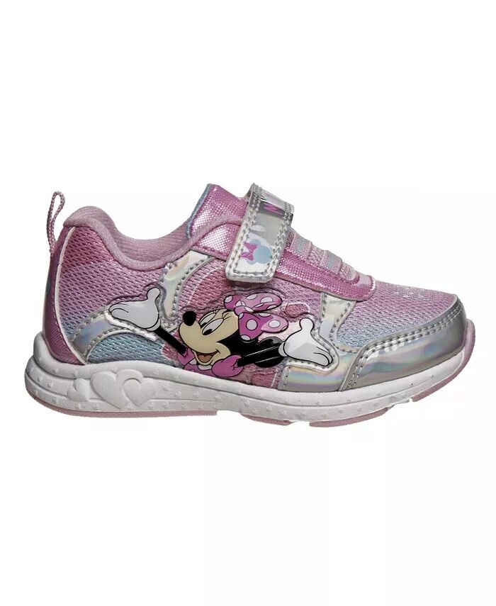 Кроссовки Disney Minnie Mouse с двумя красными огоньками. Ремешок на липучке позволяет регулировать размер и быстро надевать и снимать. Минни Маус украшает эти очаровательные туфли для девочек. Классическая форма кроссовок с мягким язычком и воротником отлично подходит для повседневного или нарядного случая.
