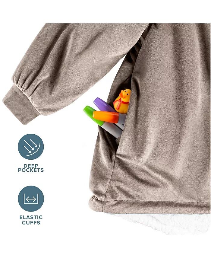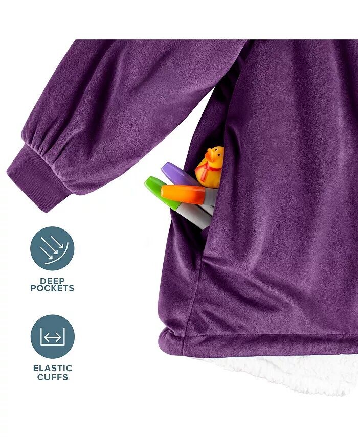 Устройтесь поудобнее в нашем большом переносном одеяле из шерпы для детей. Бархатистый микроплюшевый флис снаружи и пушистый флис из шерпы внутри позволяют детям согреться как в помещении, так и на улице, наслаждаясь при этом максимальным комфортом. Это также станет отличным подарком!