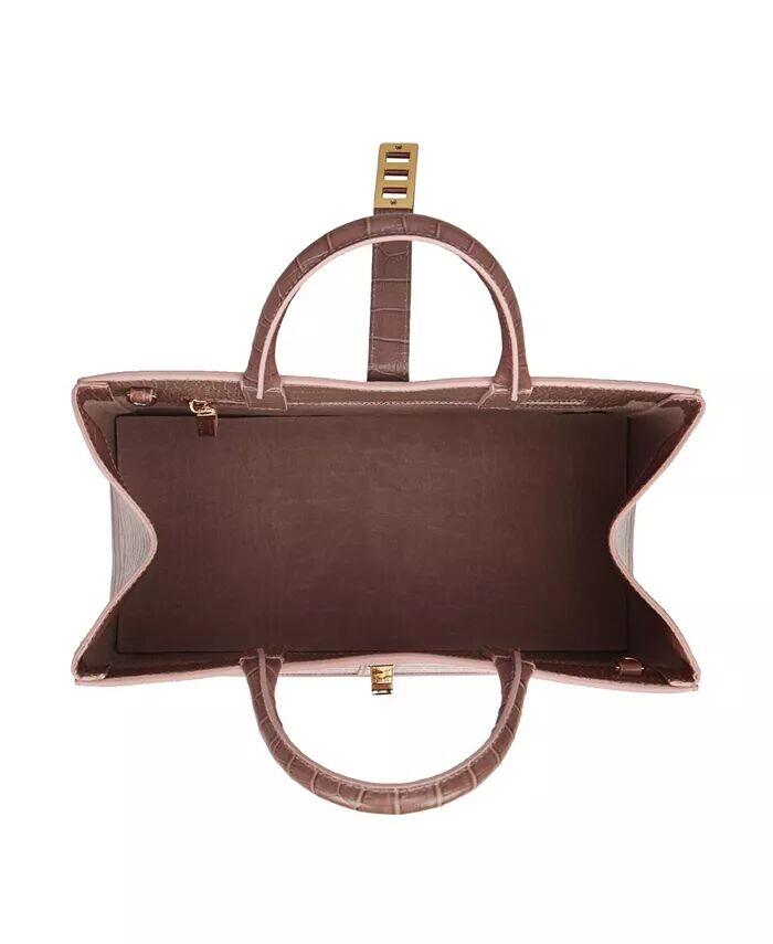 Мода и функциональность характеризуют сумку Lola, последнее дополнение к линии Teddy Blake. Модель квадратного силуэта, изготовленная в Италии из телячьей кожи с тиснением под крокодила, отличается универсальностью, двойной ручкой сверху, ремнем на плечо и просторным внутренним отделением на замшевой подкладке. Украсьте Lola по-своему, каждый день из офиса в город.
