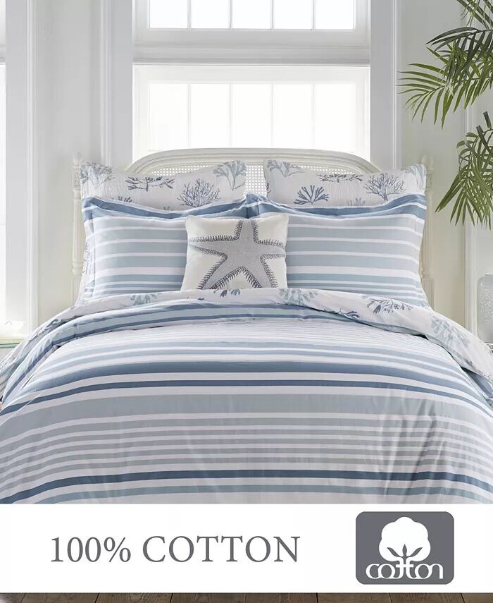 Комплект одеял Truro от Levtex Home вдохновлен прекрасными океанскими водами и украшен универсальными полосками и коралловым принтом на оборотной стороне. В комплект одеяла Truro входит одеяло и наволочка.