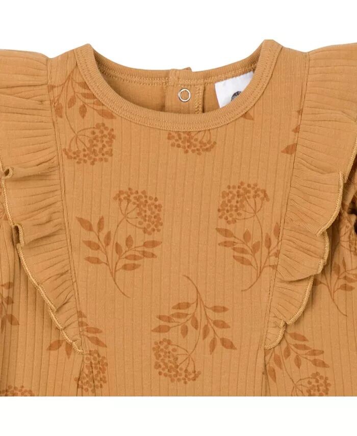 Подготовьте ее, чтобы продемонстрировать свой стиль, с помощью нашего красивого комбинезона для вашего малыша или малыша с очаровательным принтом! Изготовленная из мягкого игольчатого хлопка, она обеспечивает нежность и гибкость, обеспечивая комфорт в течение всего дня. Для вашего удобства этот комбинезон оснащен простыми кнопками на штанинах для легкой смены подгузников и задними кнопками для плотного прилегания. Округленный ребристый вырез обеспечивает удобную растяжку, а игривые оборки изнаночной кромки добавляют образу очаровательного очарования. Наши предметы первой необходимости прошли независимый сертификат STANDARD 100 от OEKO-TEX, поэтому вам не придется беспокоиться о вредных веществах в гардеробе вашего ребенка. В комплект входит один комбинезон.