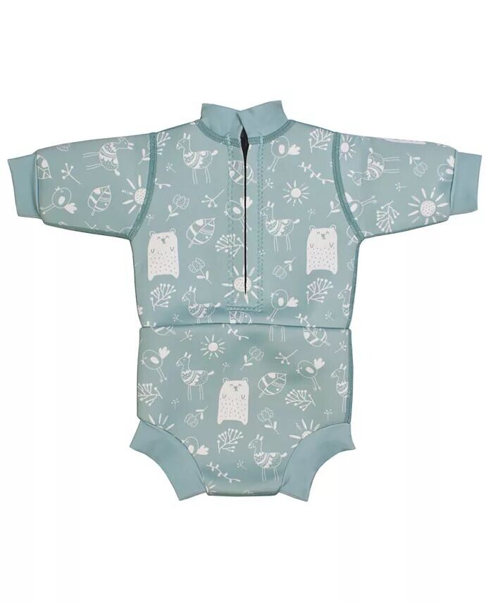 Гидрокостюм Happy Nappy — идеальный выбор для младенцев, сочетающий в себе теплоту неопрена и уверенность подгузника для плавания Happy Nappy. Гидрокостюм, изготовленный из мягкого неопрена толщиной 1 мм, закрывает основную часть тела.