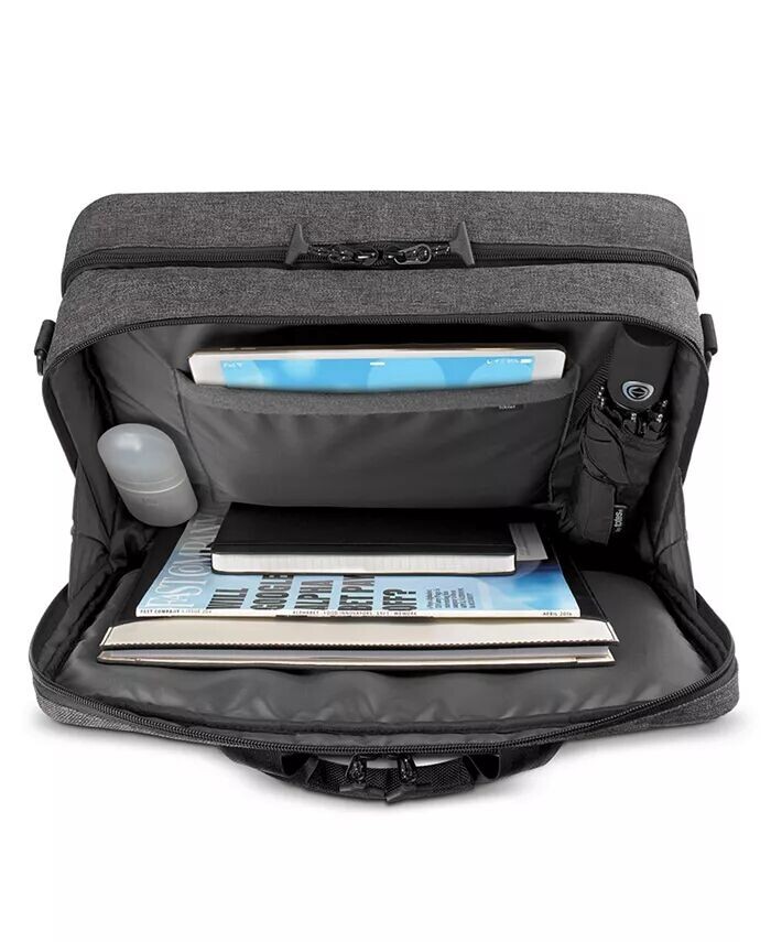 Портфель Voyage с полностью мягким отделением для ноутбука размером 15,6 дюйма. Удобный дизайн контрольно-пропускных пунктов позволяет быстрее проходить контроль безопасности в аэропорту. Внутренний карман для i Pad/планшета. Полноразмерный передний органайзер на молнии. Съемный/регулируемый плечевой ремень. Задний ремень надевается на ручку багажа.