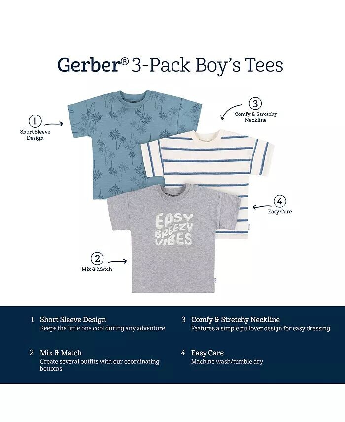 Футболки с короткими рукавами для мальчиков (3 шт.) Gerber, синий