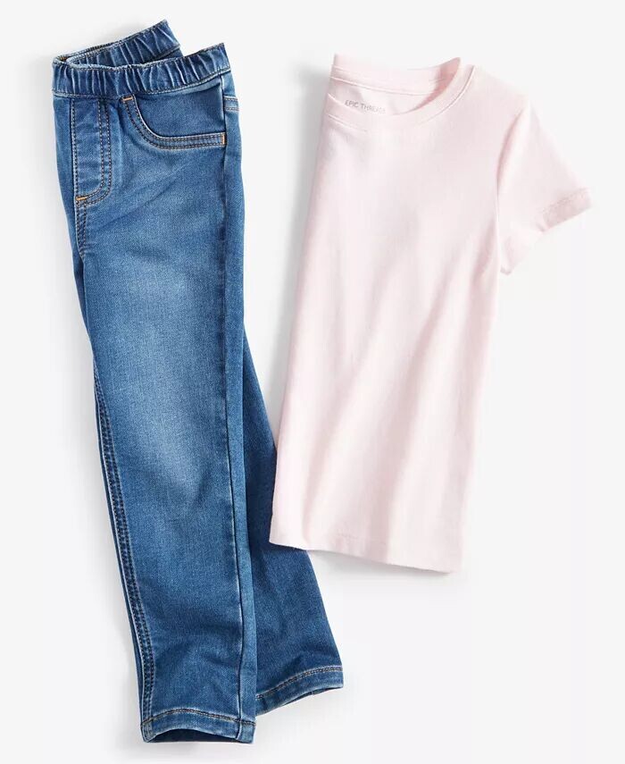 Однотонная футболка для маленьких девочек и джеггинсы Aster Epic Threads, белый