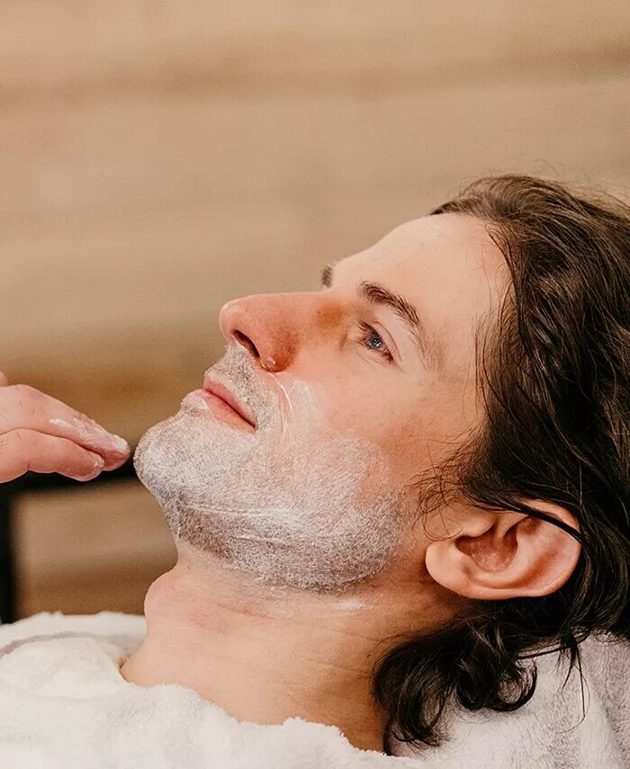 Намочите лицо теплой водой или влажным горячим полотенцем и нанесите на лицо ложку (размером с горошину) крема перед бритьем; массируйте круговыми движениями и не смывайте; нанесите пену и побрейтесь как обычно.