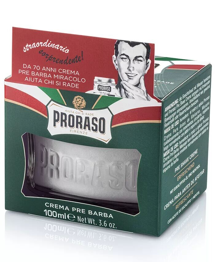 Создан в 1948 году как первый продукт линейки Proraso. Крем перед бритьем Proraso благодаря своей особенно насыщенной и густой текстуре помогает подготовить кожу к тщательному бритью, смягчая бороду и создавая дополнительный слой защиты между бритвой и кожей.