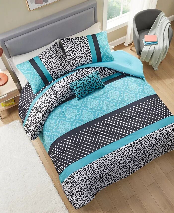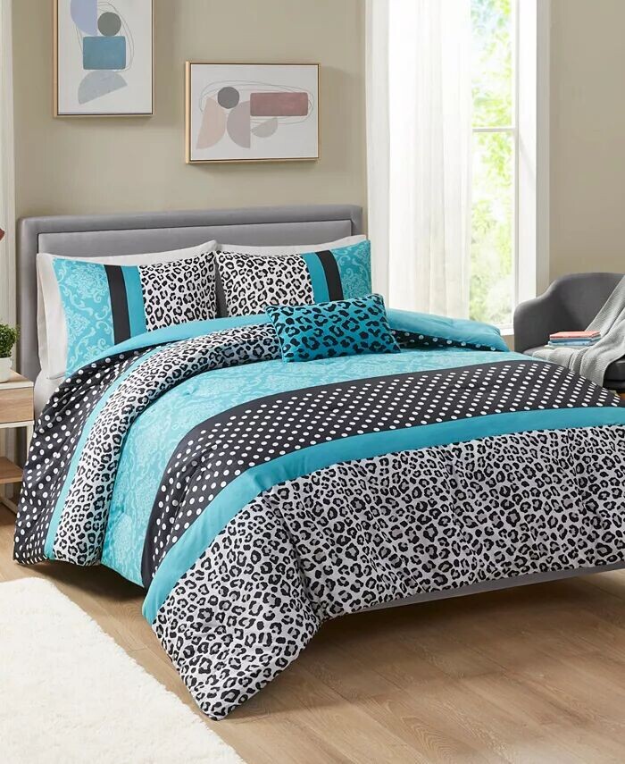 Привлекательный комплект одеял Chloe от Mi Zone выполнен в бирюзовом цвете и с леопардовым принтом, что делает его отличным выбором для украшения комнаты.