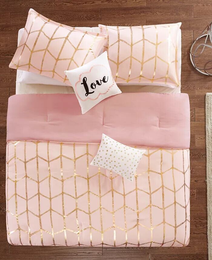 Райна Металлик 4 шт. Комплект одеял, Twin/Twin XL Intelligent Design, розовый