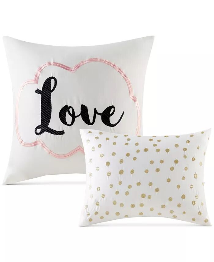 В комплект входит: одеяло (68 x 90 дюймов), одна стандартная имитация (20 x 26 дюймов) и две декоративные подушки (12 x 16 дюймов, 16 x 16 дюймов).