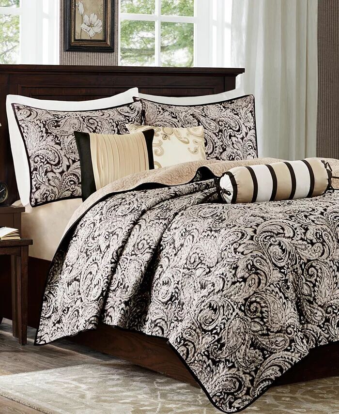 Придайте эффектный вид декору вашей спальни с помощью яркого жаккарда с рисунком пейсли и насыщенных мерцающих тонов этого комплекта одеял Обри от Madison Park. Входящие в комплект декоративные подушки придают ансамблю и любой обстановке стильную глубину и объем.