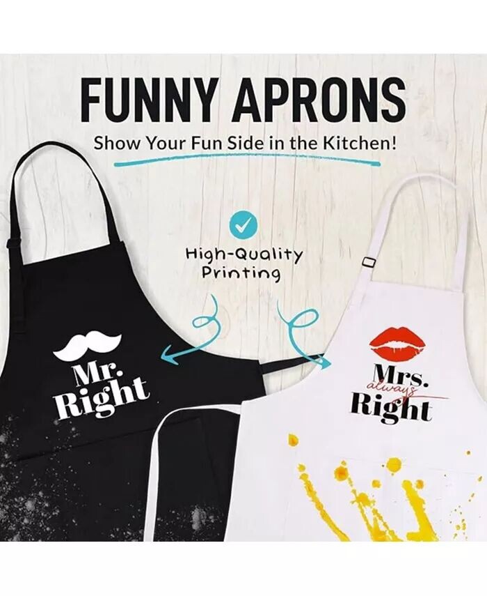 Наши забавные и забавные кухонные фартуки, на которых напечатаны кулинарные каламбуры и крылатые фразы, вызовут улыбку на лице каждого. Наслаждайтесь готовкой на кухне вместе со своими близкими, получайте удовольствие от приготовления вкусной еды на гриле для своей семьи или проведите время, занимаясь любимым занятием декоративно-прикладным искусством с нашими фартуками.