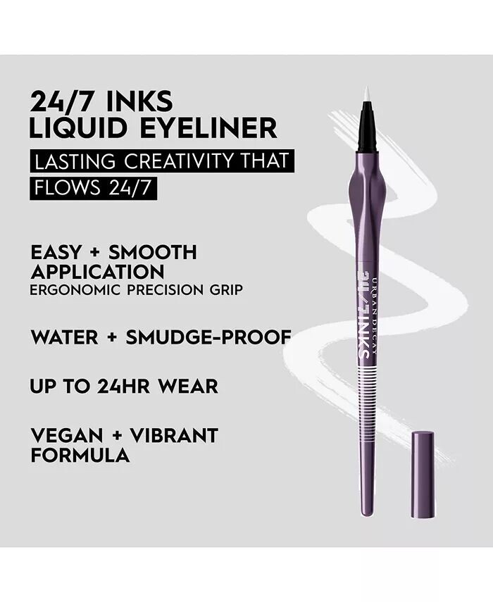 Жидкая подводка для глаз 24/7 Inks Liquid Eyeliner, вдохновленная профессиональными кистями, раскрывает вашего внутреннего художника и обеспечивает безупречную работу. Эта инновационная подводка для глаз, изготовленная в Японии, имеет эргономичный дизайн, запатентованный точный захват и сверхострый кончик. Она дает вам полный контроль. Создавать разнообразные образы макияжа глаз стало проще, чем когда-либо, от повседневных спокойных образов до более изысканных и графичных образов подводки.