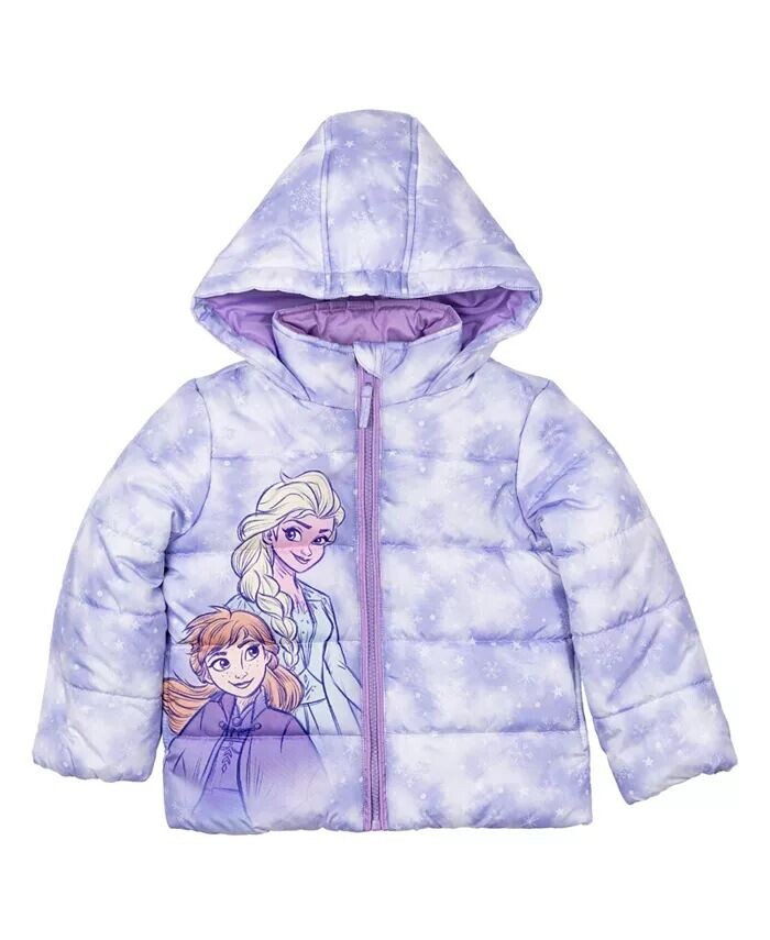 Милая и стильная пуховая куртка с капюшоном для девочек Disney Frozen, официально лицензированная Disney, идеально подходит для согрева зимой и готовности к приключениям в любую погоду.