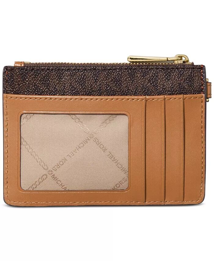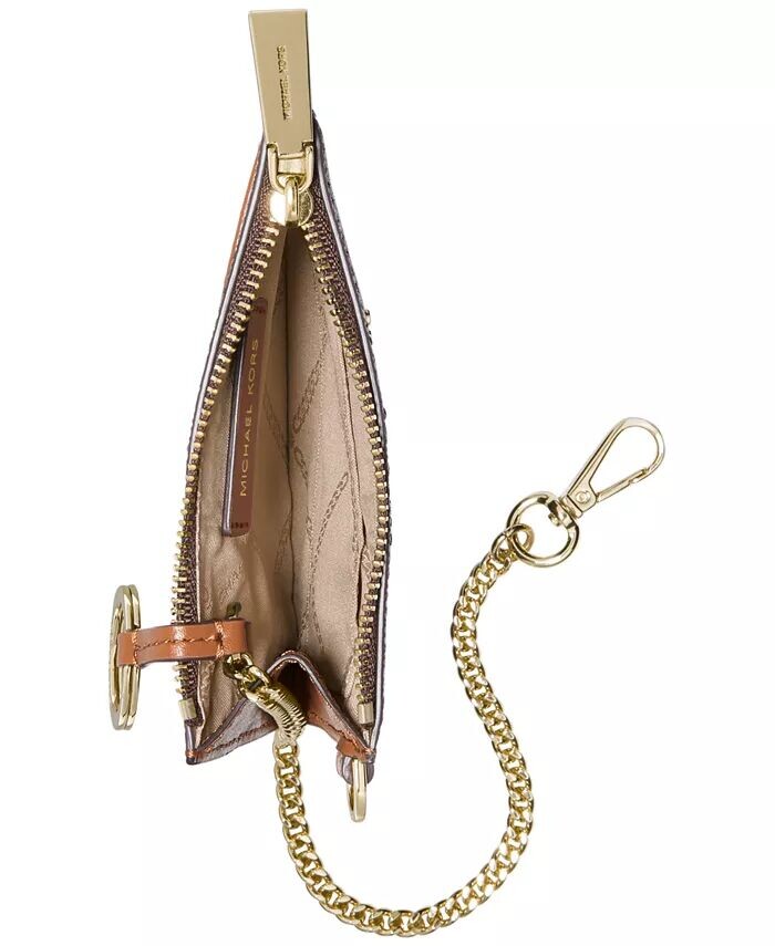 Этот мешочек для монет Michael Kors, выполненный из знаковых логотипов, имеет отделения для карт и окошко для удостоверения личности на задней стороне для легкого доступа.