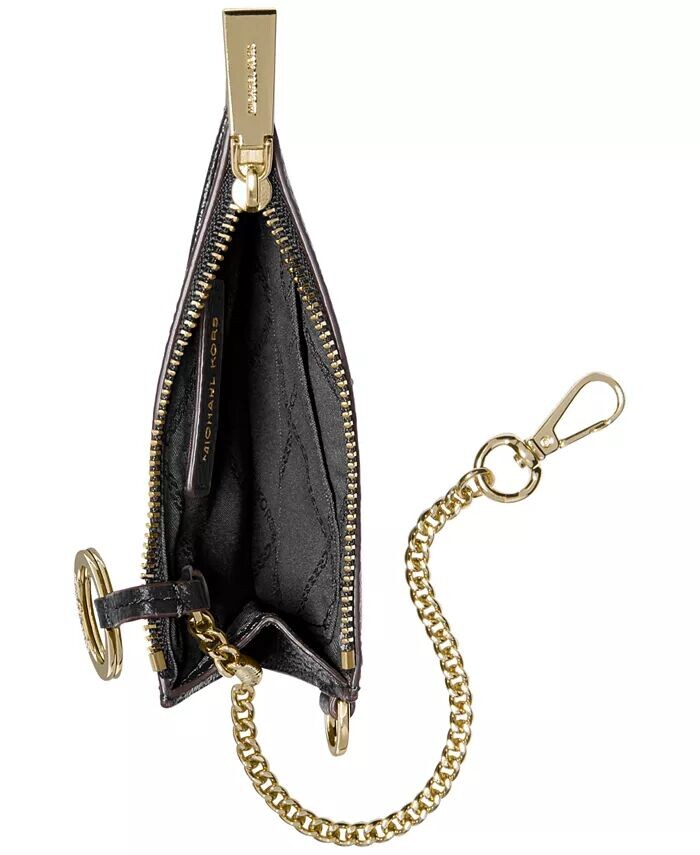 Этот мешочек для монет Michael Kors, изготовленный из кожи, имеет отделения для карт и окошко для удостоверения личности сзади для легкого доступа.