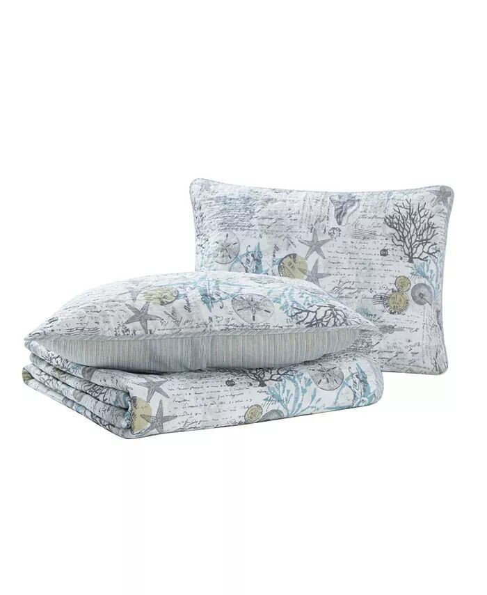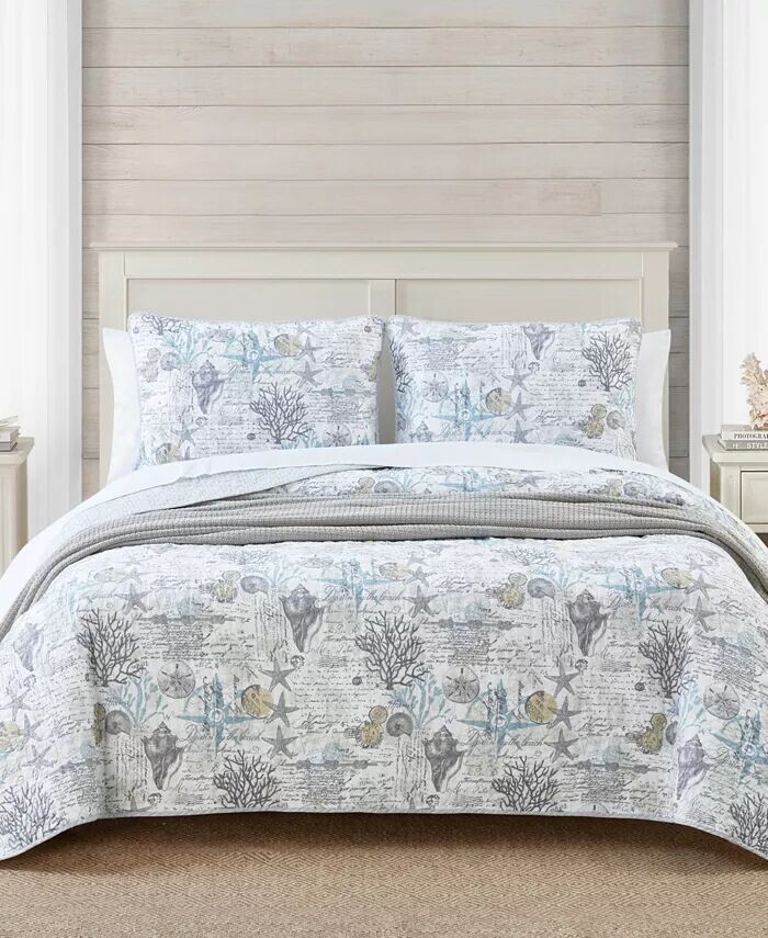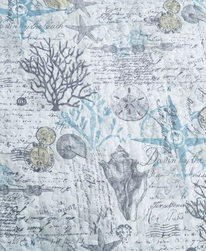 Наше одеяло Tommy Bahama Home Beach Bliss украшено рисунком открытки с морскими предметами, такими как ракушки и кораллы, на светло-сером фоне. Хлопковое одеяло предварительно стирается для придания ему мягкости и идеально подходит как отдельно, так и в качестве многослойного изделия.