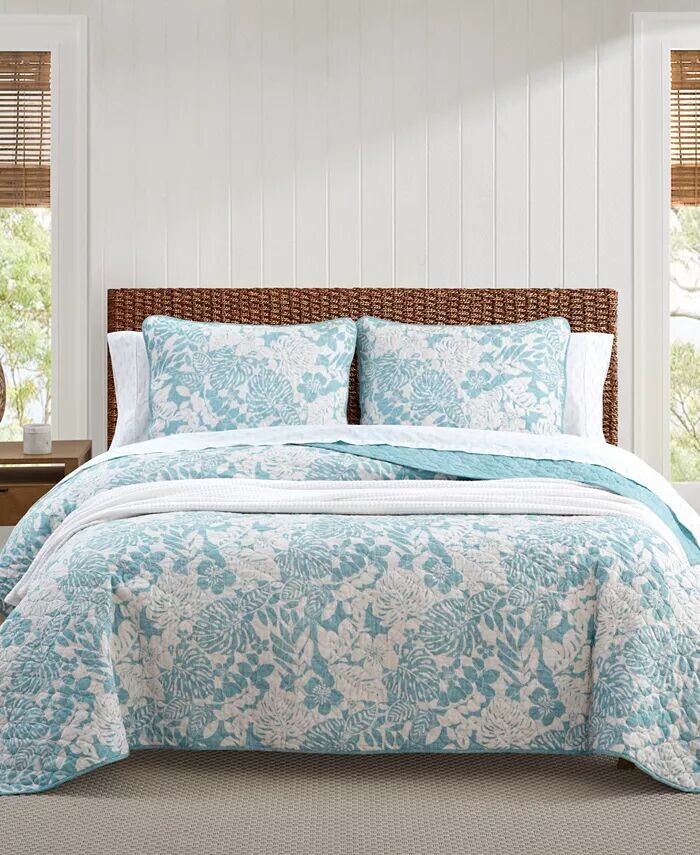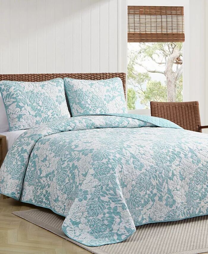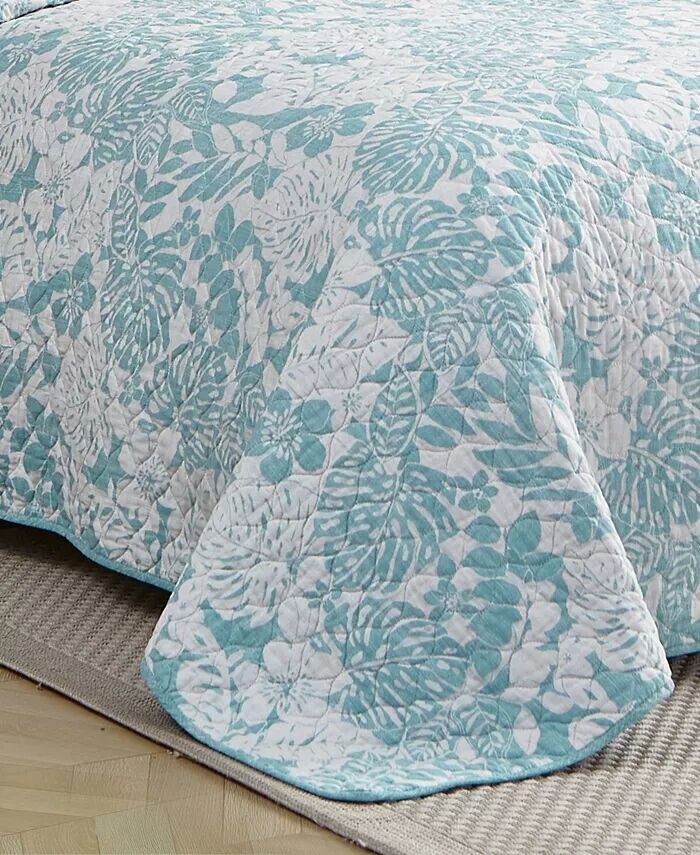 Наше одеяло Tommy Bahama Home Laguna Beach, вдохновленное побережьем Калифорнии, украшено узором из белых цветов и листьев на аквамарине. Этот образ гарантированно перенесет вас в ваше уединенное место, а за одеялом из окрашенной хлопчатобумажной пряжи легко ухаживать.