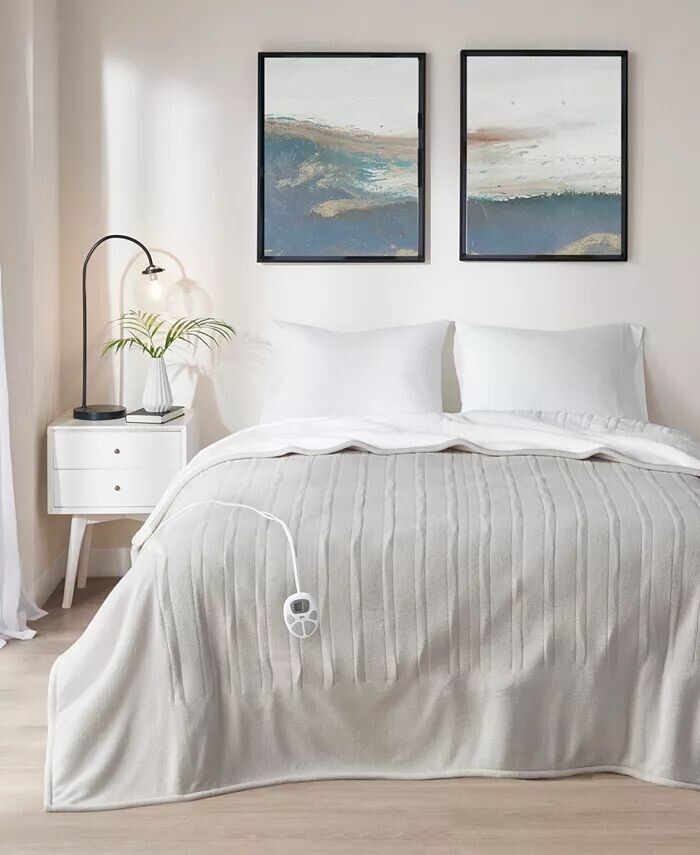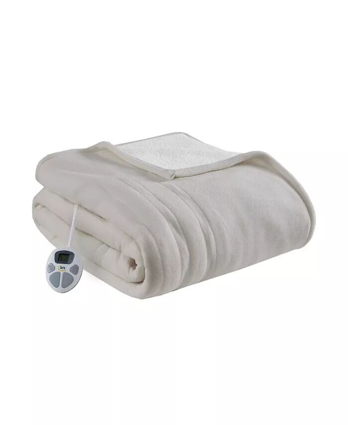 Электрические двусторонние флисовые одеяла из шерпы Serta, бежевый