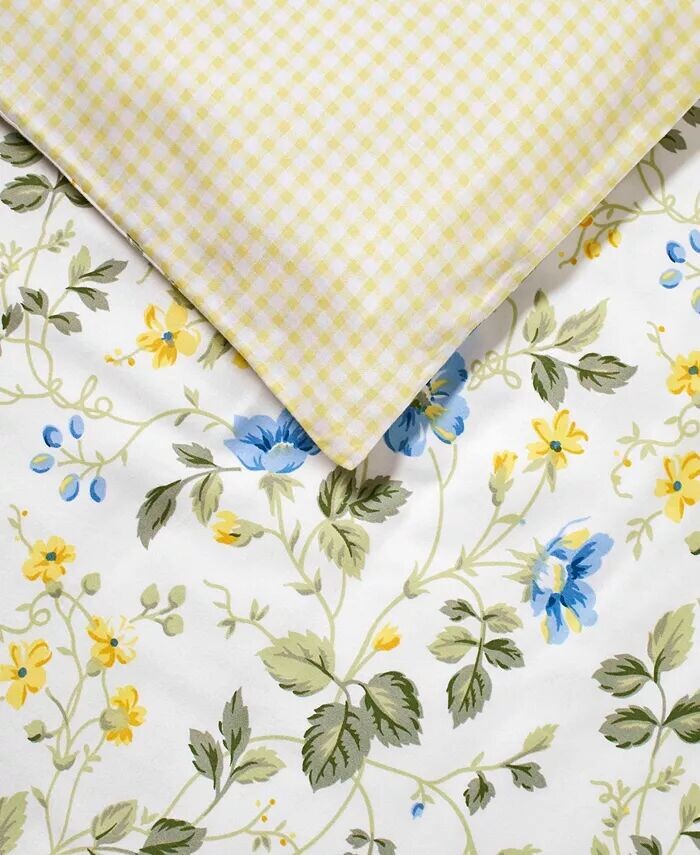 Комплект пуховых одеял Laura Ashley Meadow взрывается синими и желтыми весенними цветами, покачивающимися на ветру, и превращается в солнечно-желтую клетчатую клетку. Комплект выполнен из хлопкового сатина плотностью 300 нитей, который имеет шелковистую мягкость и гладкость.