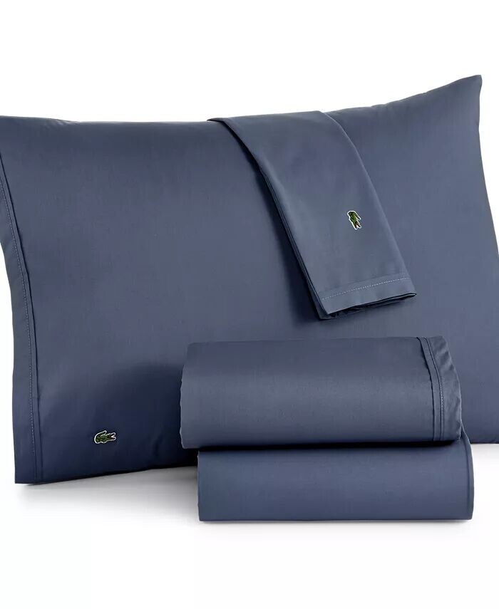 Легкий на ощупь комплект простыней из твердого перкаля Lacoste имеет насыщенный классический оттенок с фирменным логотипом в виде крокодила и идеально подходит для любой спальни!