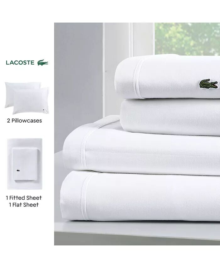 Твердый хлопковый перкаль 4 шт. Наборы простыней Lacoste Home, белый 7 097₽