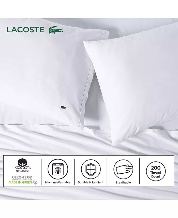 Твердый хлопковый перкаль 4 шт. Наборы простыней Lacoste Home, белый