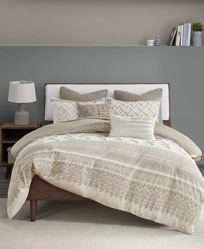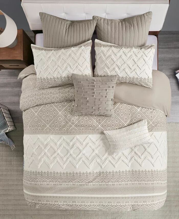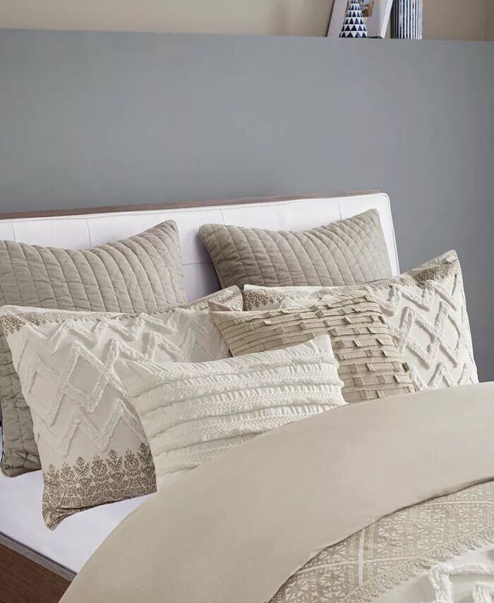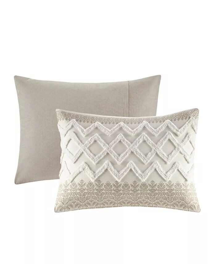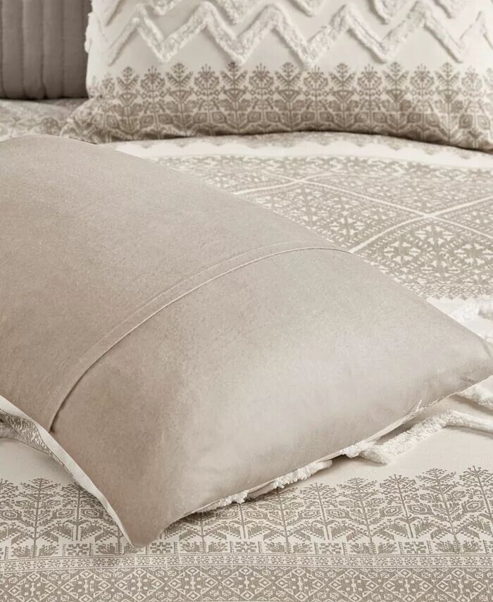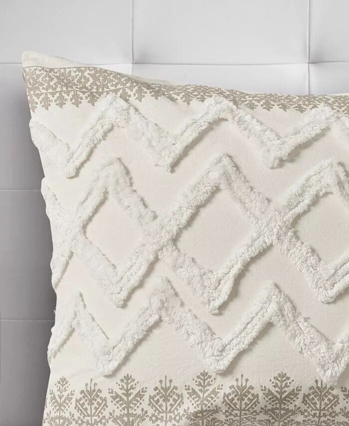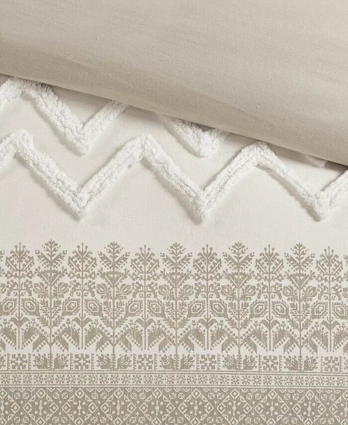Комплект пододеяльников INK+IVY Mila с хлопковым принтом украшен обновленным серо-коричневым ботаническим принтом на белом фоне с ворсистой белой синелью в шевронном узоре, что создает очаровательный образ фермерского дома. Сплошная серо-коричневая изнанка дополняет верхнюю часть пододеяльника.