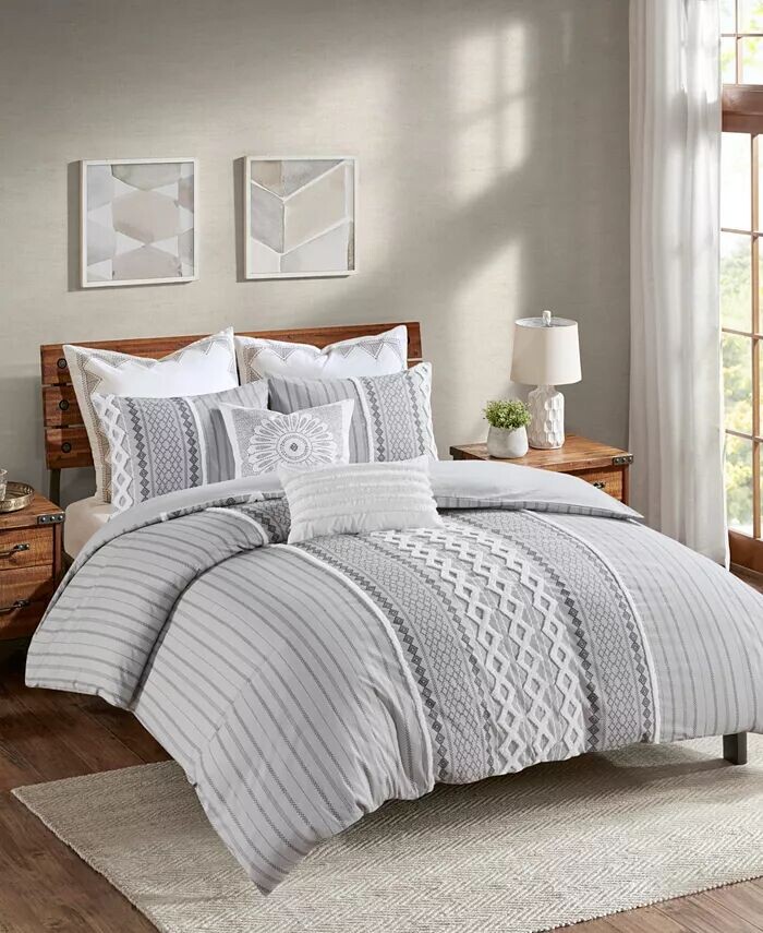Придайте своей спальне мягкий вид середины века с помощью мини-комплекта одеял INK+IVY imani. Одеяло украшено геометрическими принтами с ворсистой синелью, что придает комплекту постельного белья объем и очарование.