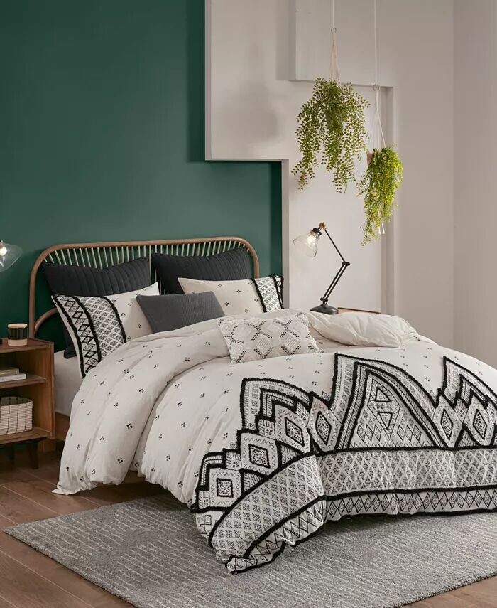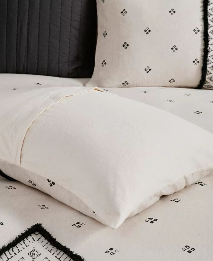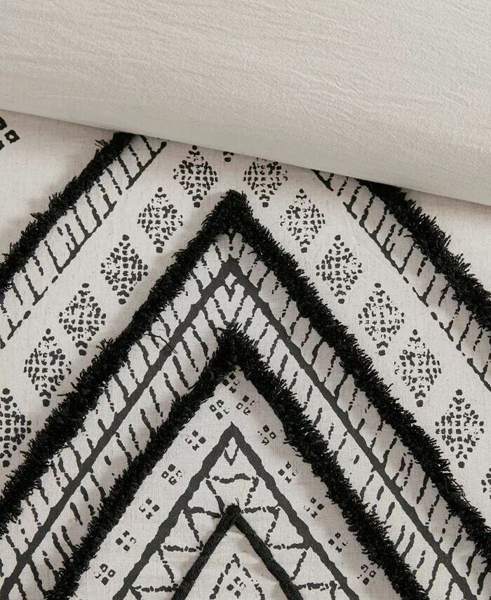 Комплект из трех хлопковых пододеяльников INK+IVY Marta украшен ромбовидным принтом и фактурной отделкой из синели, которая придает объем и создает образ, вдохновленный мировыми традициями.