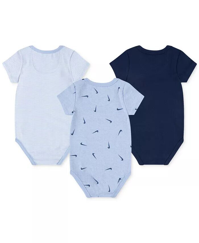 Этот комплект Nike незаменим для всех малышей. В него входят три боди с короткими рукавами, круглым вырезом, притертыми плечами, быстрой и легкой застежкой на кнопки по внутреннему шву, а также уникальный дизайн Nike для создания изысканного спортивного образа.
