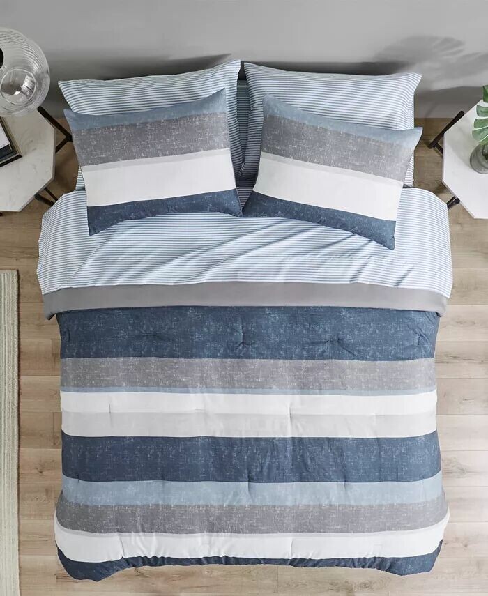 Обновите стиль своей спальни с помощью кровати Madison Park Essentials Jaxon в сумке. Этот современный комплект одеял имеет полосатый рисунок чередующихся серого, темно-синего и синего цветов в сочетании со сплошной серой изнанкой, что создает непринужденную атмосферу.