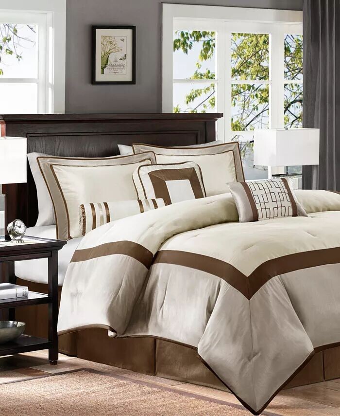 В комплект входят: королевское одеяло (104 x 92 дюйма), королевская юбка California (72 x 84 + 15 дюймов), две королевские накидки (20 x 36 дюймов + 2 дюйма) и три декоративные подушки (12 x 16 дюймов). , 7 x 18 дюймов, 16 x 16 дюймов + 3 дюйма