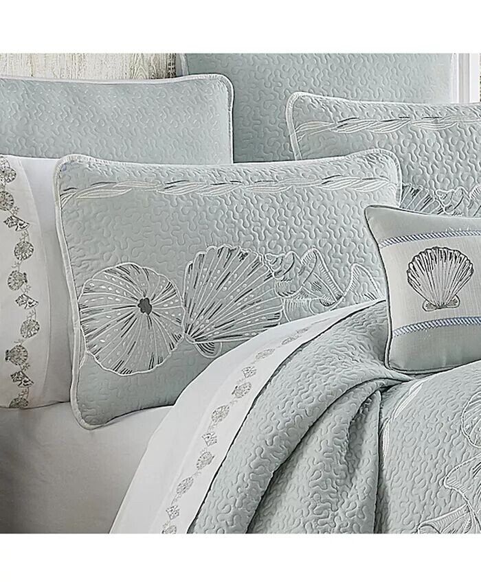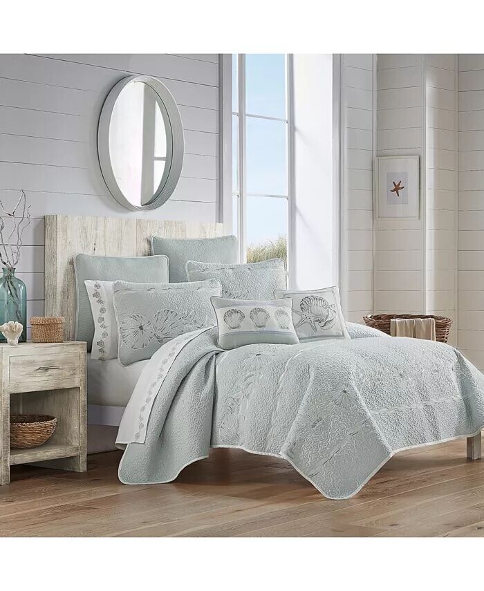 Комплект одеял у кромки воды придаст освежающий, обновленный прибрежный вид декору вашей спальни. Мягкие цвета морской волны, синего и белого цвета вышиты замысловатыми ракушками и морской жизнью, которые красиво ниспадают по одеялу.