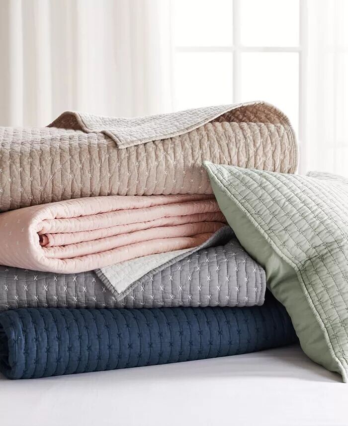 Покрывало и набор подушек Desert Sage с вышивкой крестом создают невероятно мягкое ощущение, которое вам просто понравится