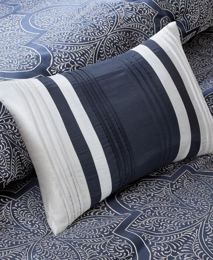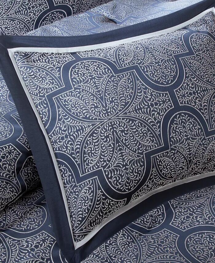 Добавьте роскошный стиль в свою спальню с помощью комплекта одеял Medina от Madison Park с богато украшенным жаккардовым переплетением в темно-синих и серебристых тонах.