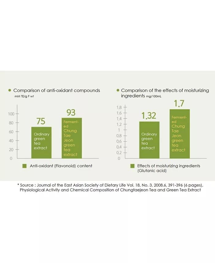 Этот увлажняющий тоник мягко тонизирует и успокаивает кожу, придавая ей обновленный, осветленный и смягченный цвет лица. Зеленый чай, ферментированный антиоксидантами, восполняет и балансирует уровень влаги в коже, очищает и подготавливает кожу к более эффективному впитыванию сывороток и увлажняющих средств. В нашей коллекции Chok Chok представлен Chung Tae Jeon, особый ферментированный корейский зеленый чай с более чем тысячелетней историей. Чунг Тэ Джон, первый в мире зеленый чай, ферментированный естественным путем, ферментируется под воздействием солнечного света в течение более 365 дней и обеспечивает мягкое, но интенсивное увлажнение и длительное увлажнение.