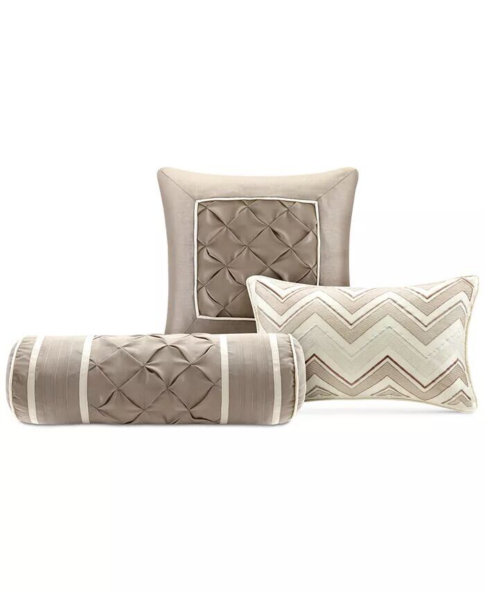 В комплект входят: одеяло (104 x 92 дюйма), юбка для кровати (72 x 84 дюйма + 15 дюймов), две королевские подушки (20 x 36 дюймов) и три декоративные подушки (18 x 18 дюймов, 12 x 18 дюймов). ", 6,5 x 18 дюймов"