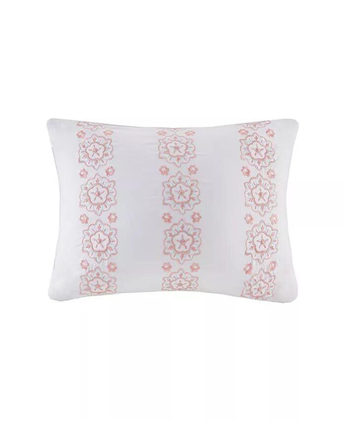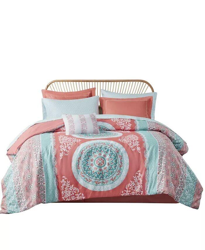 Яркий и непринужденный комплект одеял Loretta от Intelligent Design украшен медальонами ярких оттенков кораллового, бирюзового, белого и бирюзового цветов и украшен тонкими геометрическими богемными деталями, что делает его поразительно красивым дополнением к декору любой комнаты.