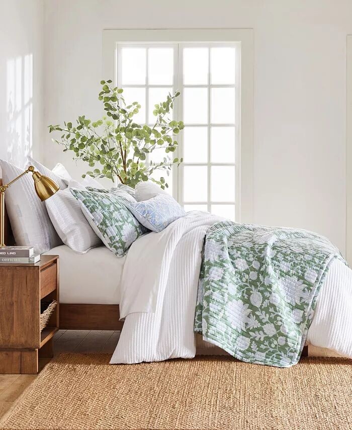 Двусторонний комплект одеял Evelyn Jacobean с цветочным рисунком от Levtex home вдохновлен ботаническим природным садом. Это одеяло, представленное в зеленом, синем и белом цветах, можно стирать в машине. Наслаждайтесь этим долгие годы.