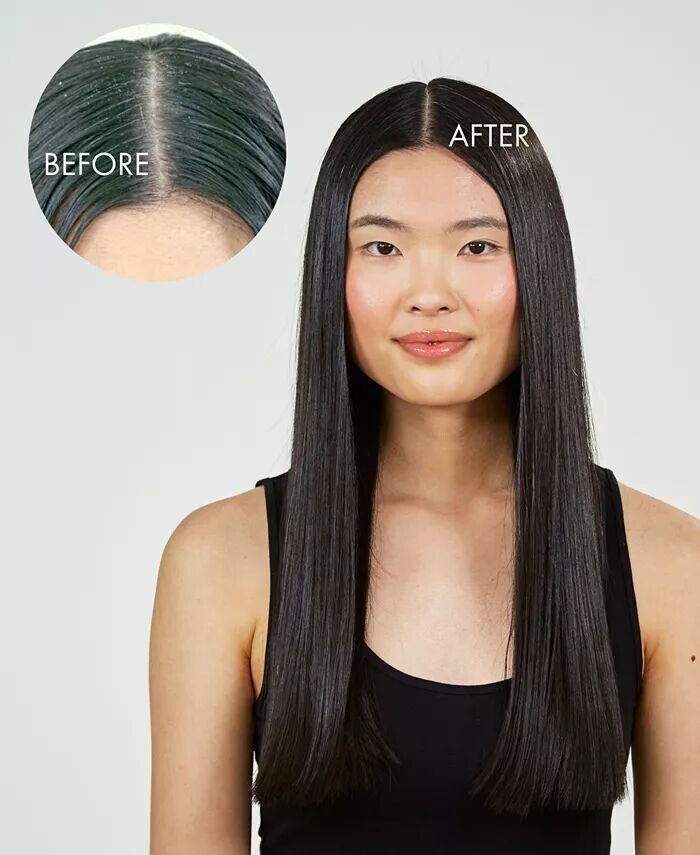 Смывает загрязнения и освежает волосы от корней до кончиков, не снимая их.