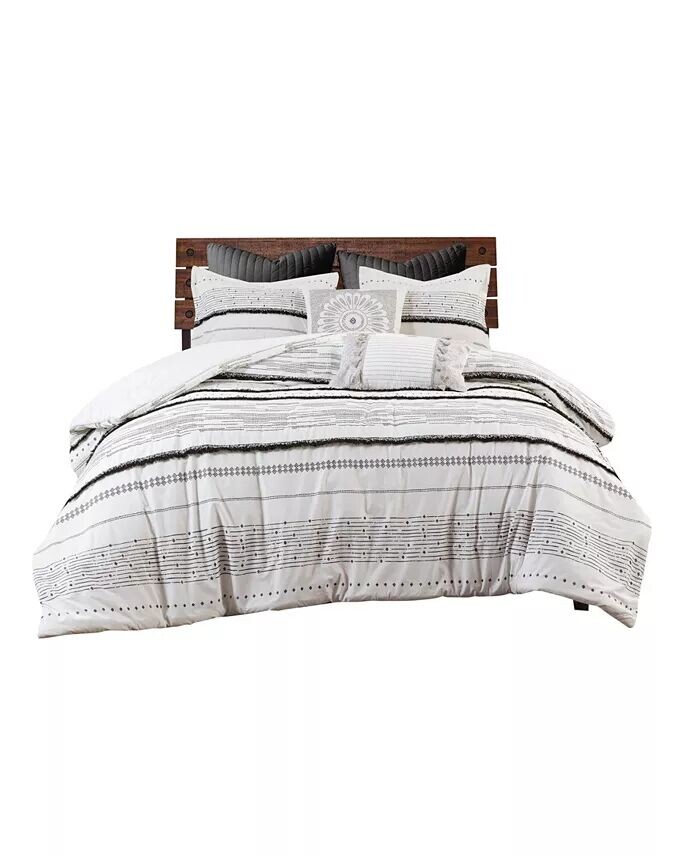 Придайте своей спальне обновленный шебби-шик с помощью комплекта пододеяльников с хлопковым принтом INK+IVY и отделкой. Хлопковое пододеяльник украшен принтом в черные полоски и 6 рядами хлопковых ворсистых кромок, которые придают объем очаровательному образу в стиле бохо.