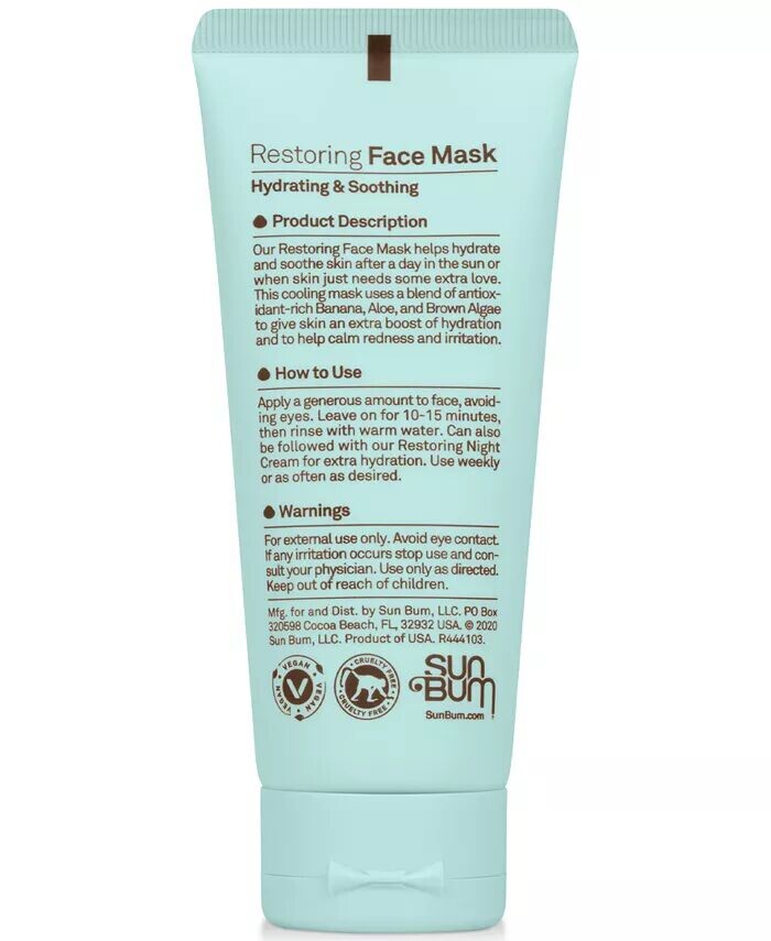 Восстанавливающая маска для лица Sun Bum помогает увлажнить и успокоить кожу после дня, проведенного на солнце, или когда кожа просто нуждается в дополнительной заботе.