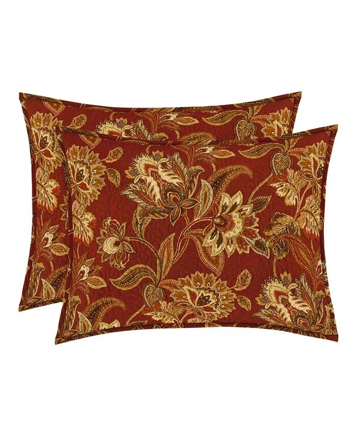 Набор одеял Montecito отличается красиво напечатанным разноцветным цветочным узором в стиле Якова и структурой лоскутного одеяла вермишели. Цвета включают тона золота и пряностей, подчеркнутые драматическим фоном.