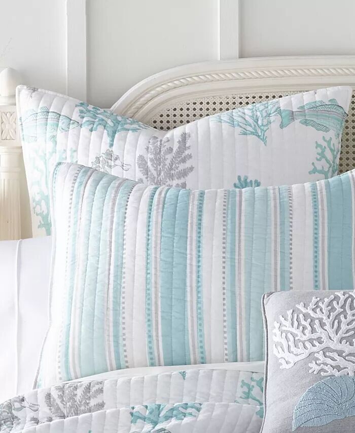 Накладки Cape Coral Euro станут прекрасным дополнением вашего интерьера. Эти евро украшены безмятежным подводным пейзажем в мягких бирюзовых и серых тонах, которые прекрасно дополнят ваш ансамбль постельного белья. Соответствующие комплекты одеял и декоративных подушек Cape Coral продаются отдельно.