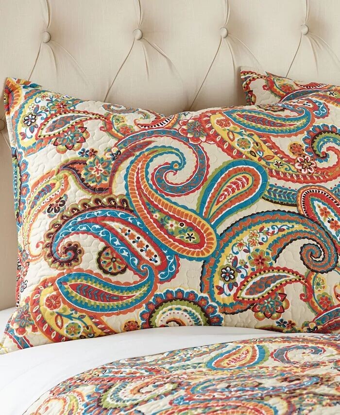 Оживите свое пространство с помощью вневременного стиля комплекта одеял Alyssa с узором пейсли. Прекрасные пейсли различных элегантных тонов украшают теплый бежевый фон.