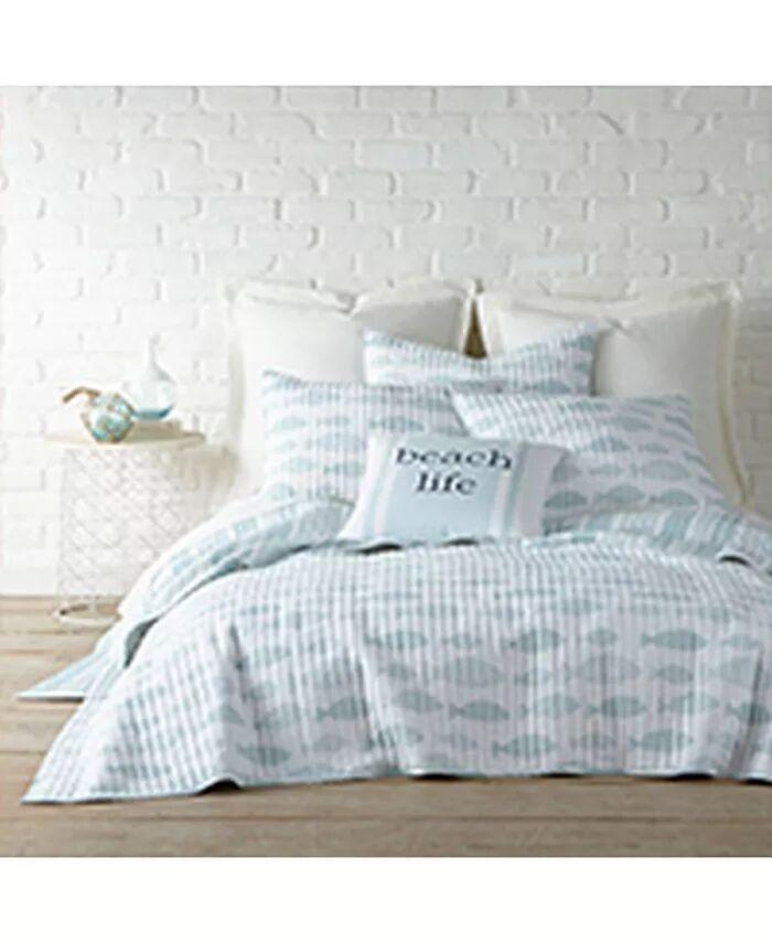 Комплект двойных одеял Aqua Breeze имеет привлекательную полосатую переднюю часть нежного спа-голубого цвета, искусно перевернутую узором в виде рыбки.