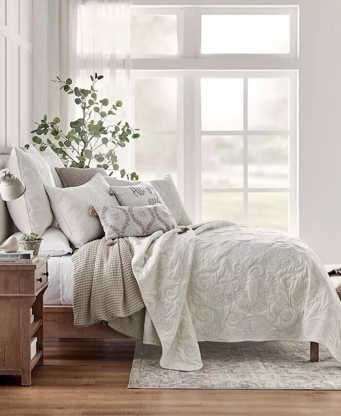 Стеганая бархатная европейская накидка от Levtex Home вдохновлена ​​гламурной винтажной модой. Приходите с завязкой на спине.